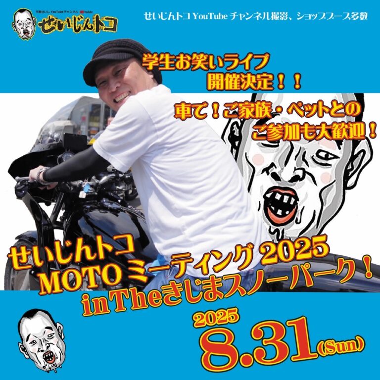 せいじんトコMOTOミーティングに出展させて頂きます。 ・イベント名:せいじんトコMOTOミーティング2025 inTheきじまスノーパーク ・日程:2025/8/31(日曜) ・時間:10時~16時…