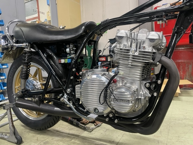 オーナー所有のKZ1000MK-2を持ち込みで製作された1台。 すでにフレーム補強を始めカスタムしてあった車両だった為、最初はエンジンOHでの相談を受けたのだがシャシーのも満足されていないとの事で車体廻りもやり直していく…