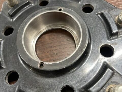 ダイマグホイールのスプロケットハブ修理です。 ホイールベアリングが回ってしまうとの事でお預かりいたしました。 ベアリングを外してみると、圧入が全く効いていない状態でした。 そこで、SS400材を使用しリングを製作し圧入&…