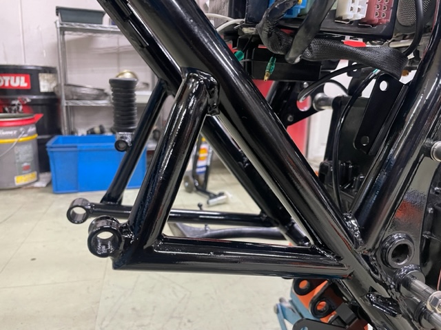 バックステップ、ショート管を取り付けたいとのご相談を受け、取り付けしていく中でタンデムレールとの干渉がありました。 見た目は純正っぽさを残したいとの事で、タンデムステップから下の加工をご提案しました。 同径のパイプを用意…